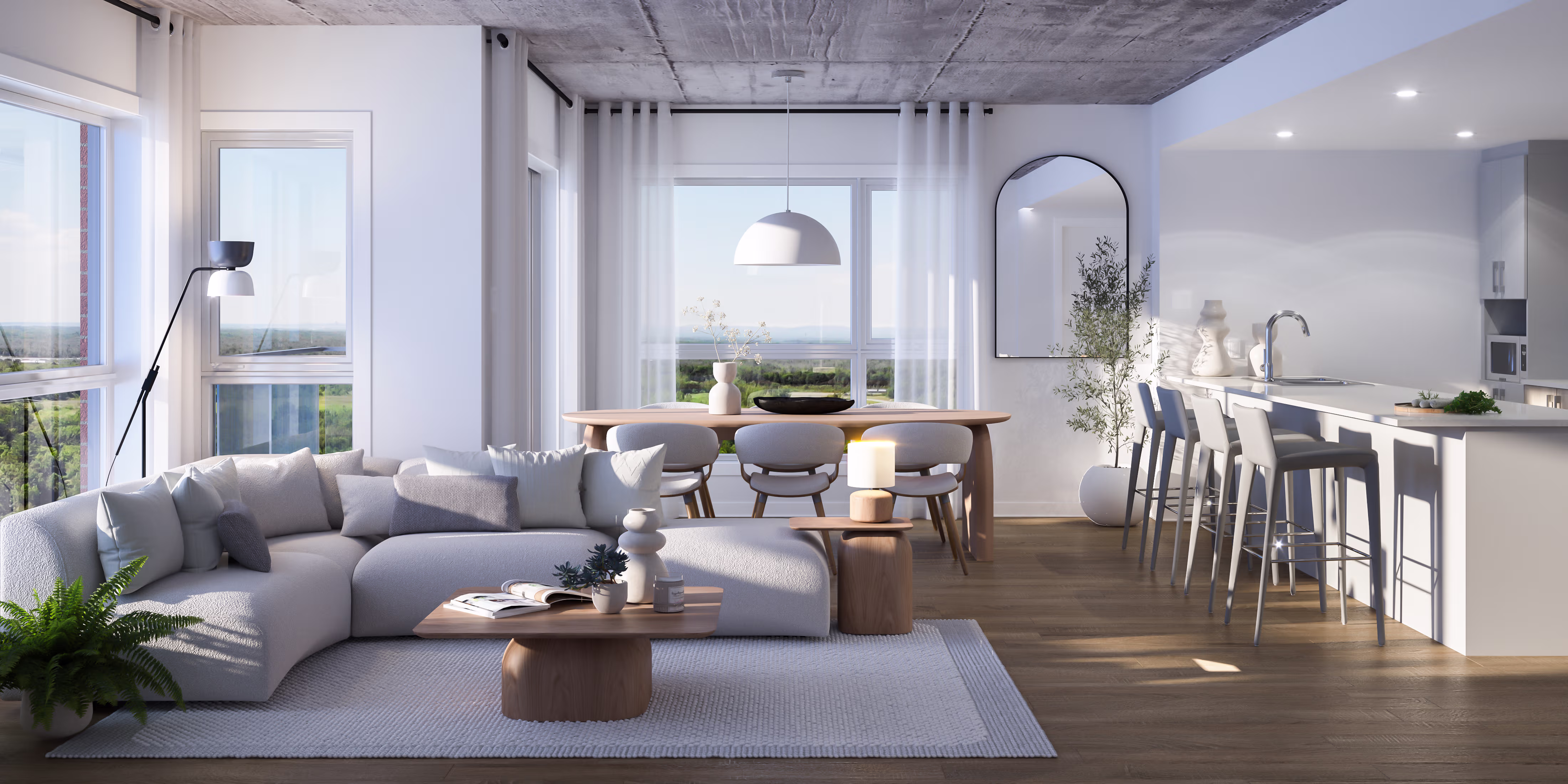 Lumineuse, moderne et bien pensée, l’unité G vous accueille au cœur de Liveo Châteauguay. Aire ouverte, cuisine avec îlot, et lumière naturelle — tout est réuni pour un confort au quotidien.